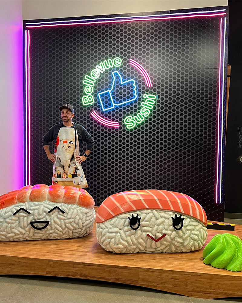 A client requested help with the creation of a selfie booth with a sushi theme. They hired Design Imagined to help with the 3D concept and neon sign details. There were several neon sign concepts created until the perfect layout was achieved.